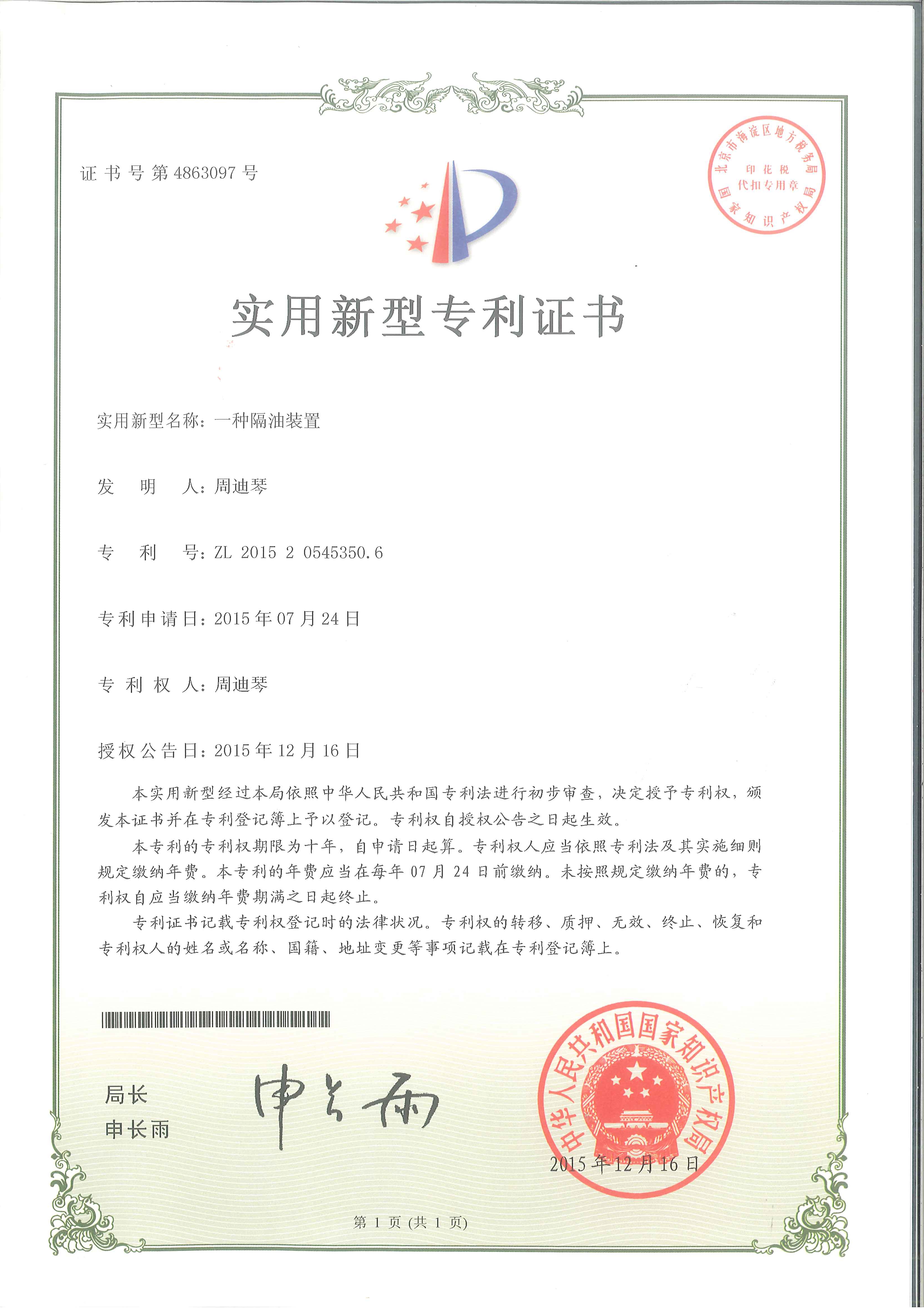 一種隔油裝置發(fā)明專利