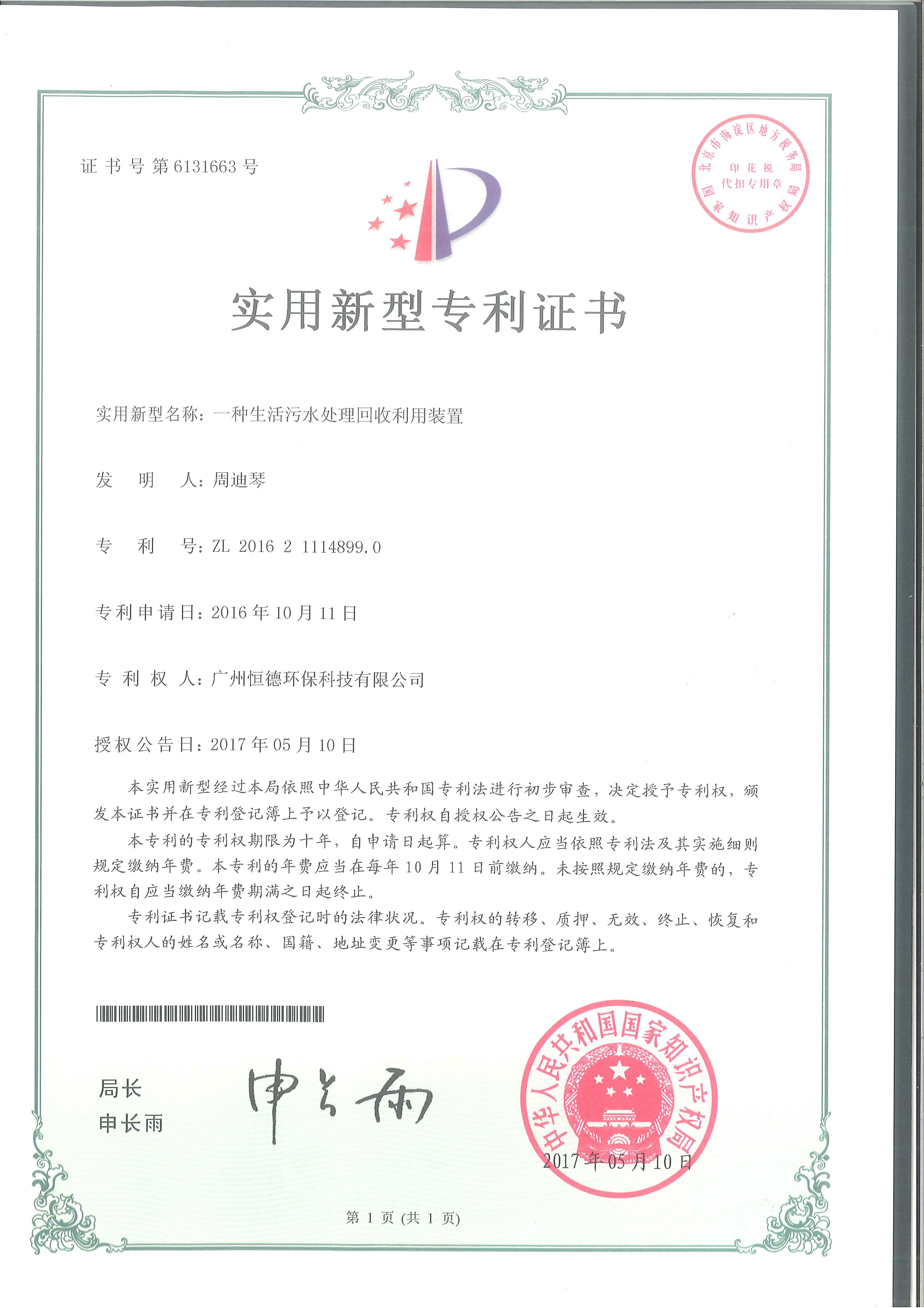 一種生活污水處理回收利用裝置