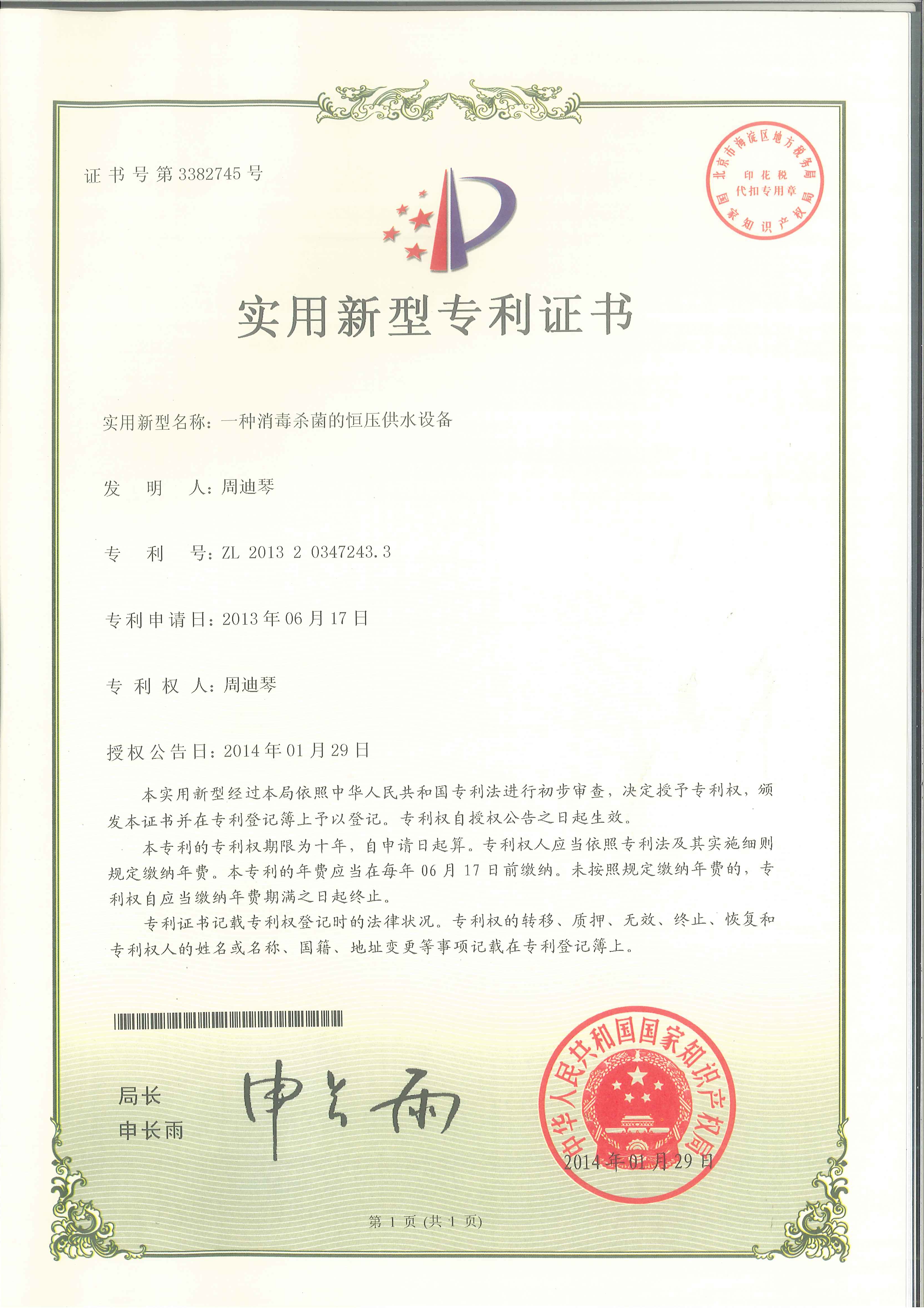 一種消毒式無負壓供水系統(tǒng)