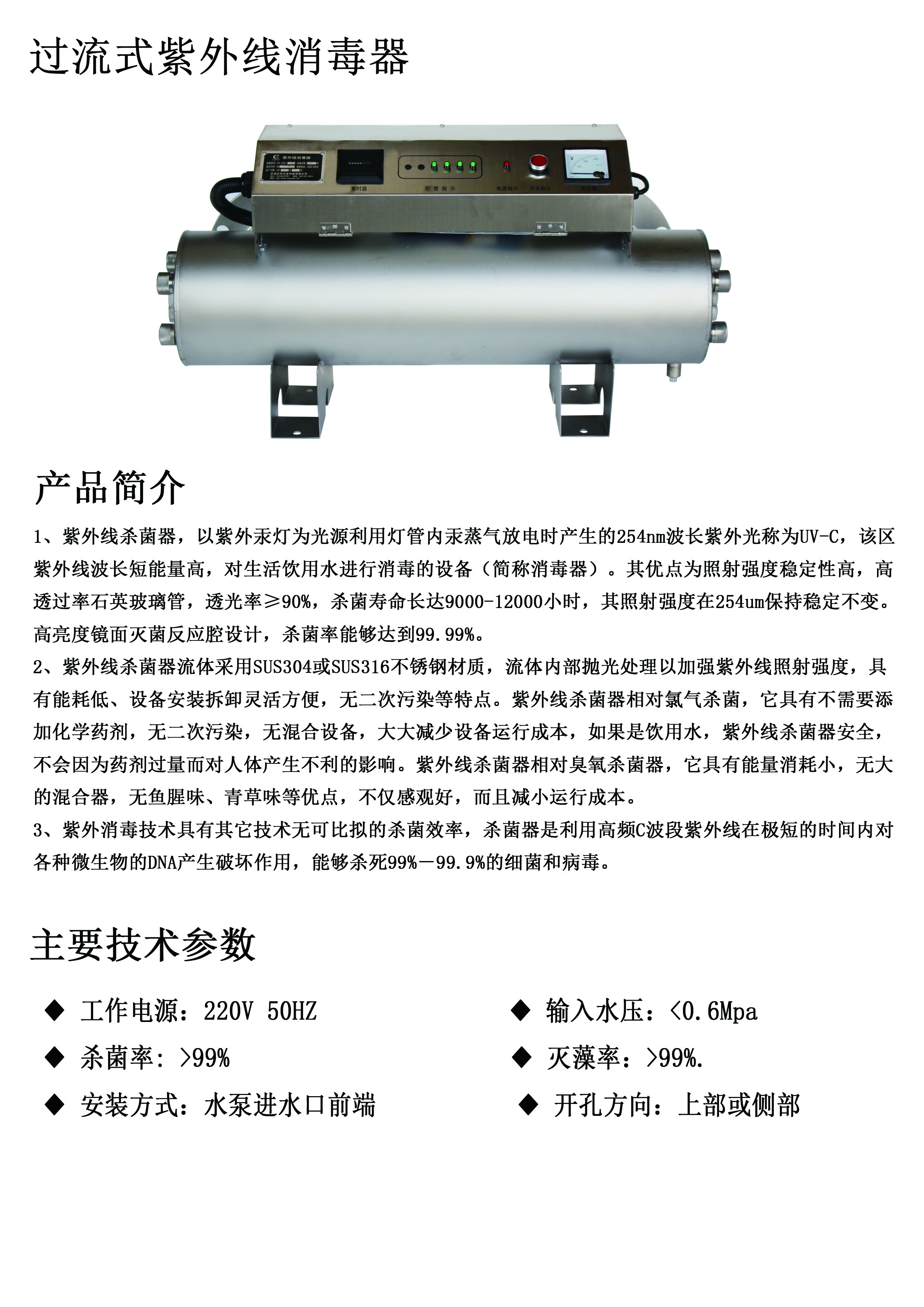 過(guò)流式紫外線消毒器
